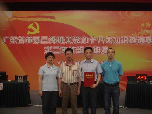 为了深入学习贯彻党的十八大精神,省直机关工委于6月20日在黄埔海关九楼大礼堂,举办省市县三级机关党的十八大知识邀请赛,35个单位经过初赛选拔,省科协等七个单位组成参赛队进行竞赛。