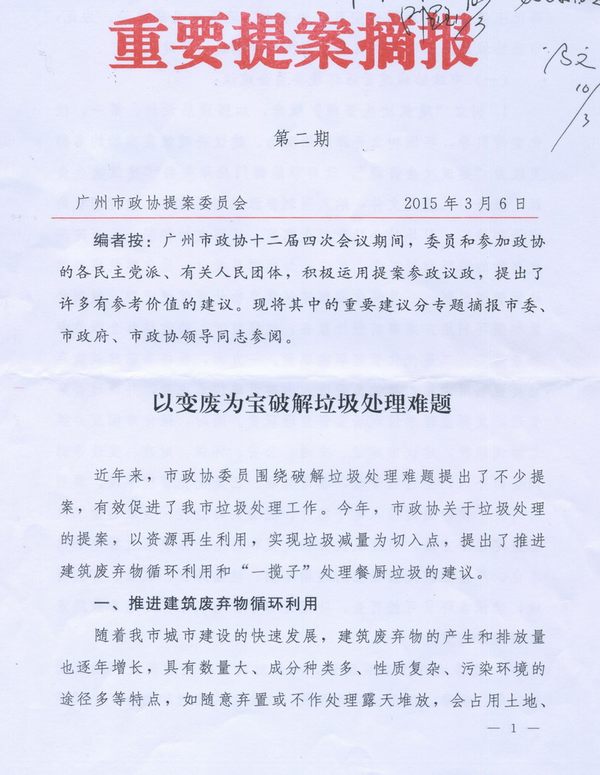 广州市科协政协委员提案被列入市政协“重要提案摘报”