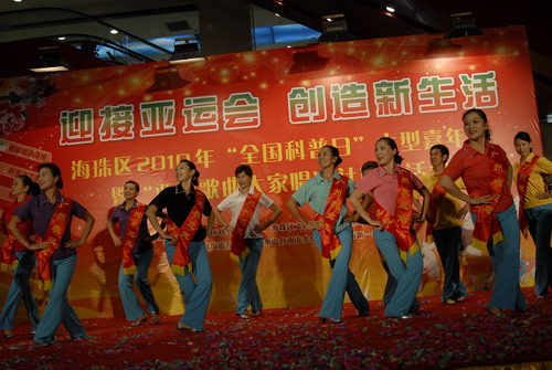 海珠区科协联合相关部门,在广百新一城举行了海珠区2010年“全国科普日”大型嘉年华暨“亚运歌曲大家唱”社区行活动。(海珠区科协 摄)