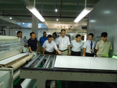 随后,调研组又冒着炎炎烈日来到惠州市摩彩装饰材料有限公司,实地参观考察科技成果展厅、材料和产品展厅以及生产车间等,并与摩彩科协的会员代表进行座谈交流。冯日光寄语摩彩公司再接再厉,不断加强企业科协和专家工作站的平台建设,充分发挥其桥梁纽带作用,为科技工作者提供更好更优质的服务,让他们找到归属感,真正感受到“家”的感觉,积极投身于公司的创新发展工作中。