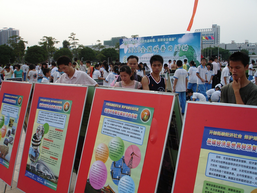 本次活动有市科技馆的“科普大蓬车”车载展品和广场LED大屏彩电同时播放多期的“科普大蓬车”节目。两台不同类型的“科普大蓬车”在市政广场斗艳争芳。车载“科普大蓬车”有“低碳生活体验区”、“科普拼图”、“立体画”、 趣味性展品;LED大屏彩电播放“未来房屋”、“聪明的自行车”、“绿色出行”等精彩画面。同时区文广新局、科技局、科协、卫生局、人口与计划生育局、妇联、司法局、质量技术监督局、气象局等单位的科普志愿者开展的科普知识咨询、发放宣传资料等吸引了一批又一批小孩、师生、市民等驻足观看或亲身体验。