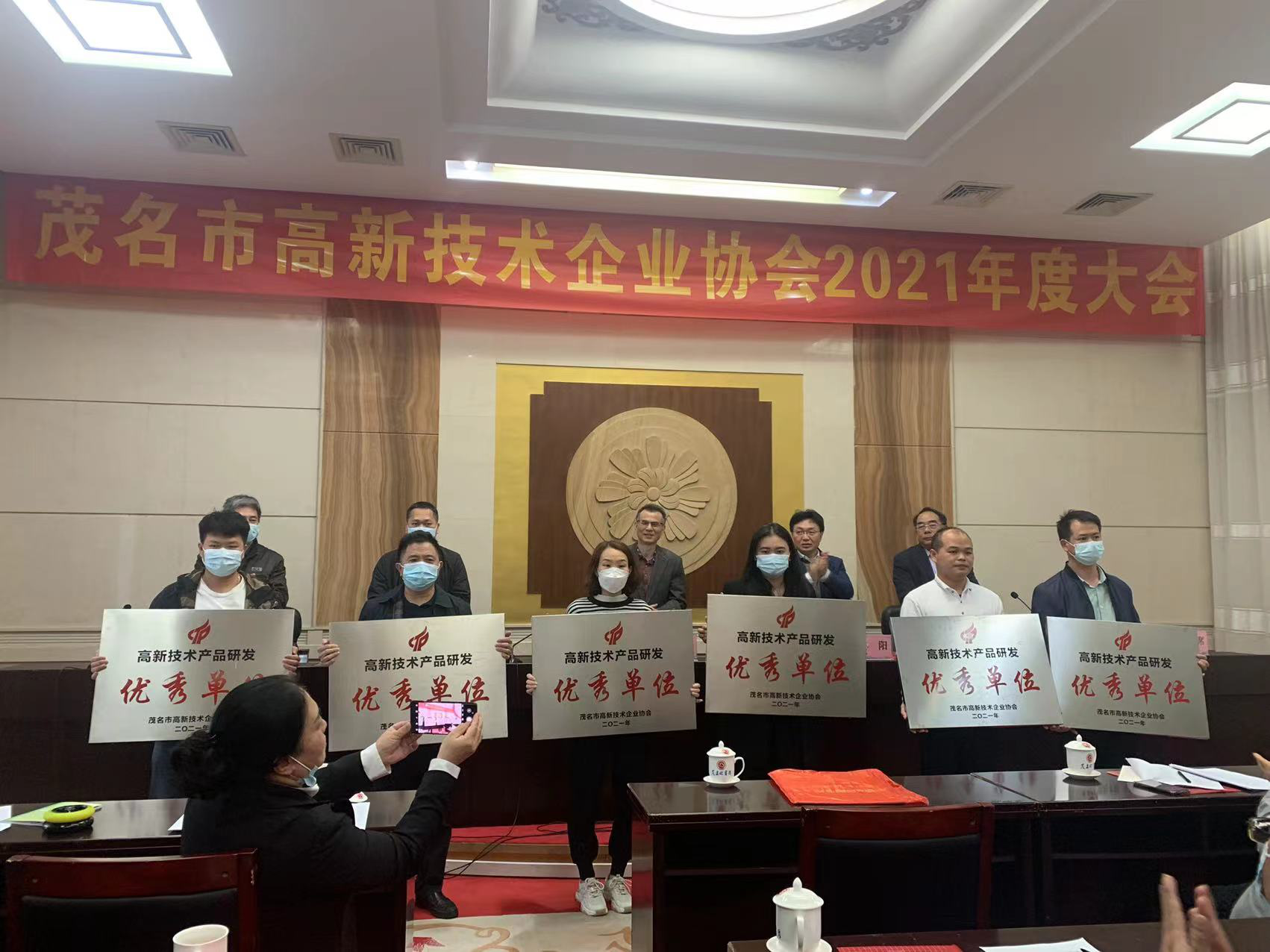 茂名市科协党组书记、主席刘付德金应邀出席并作讲话。会上,高新协会作了2021年度工作报告,宣读了《茂名市高新技术企业协会表彰高新技术产品研发先进单位、优秀单位的决定》,为5家先进、13家优秀单位颁发了牌匾。