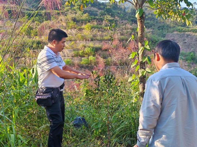 “科普同行”科学传播课堂活动结束后,刘晚传所长受邀到油茶种植农户的林场进行种植技术指导,在树形培育和林场排水等方面给出专业的指导意见。