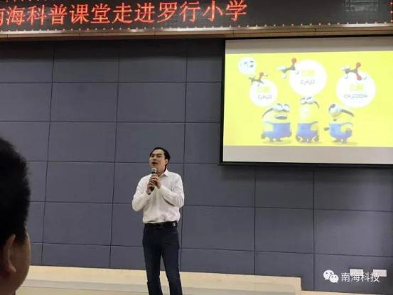 12月5日,“南海科普课堂”走进丹灶的罗行小学。本次课堂请来的讲师是九江双蒸博物馆馆长、醉岭南文化传播公司总经理:邓毅华。邓老师给罗行小学近100名小学生讲了一节“酒的科学”的生动有趣科普课。