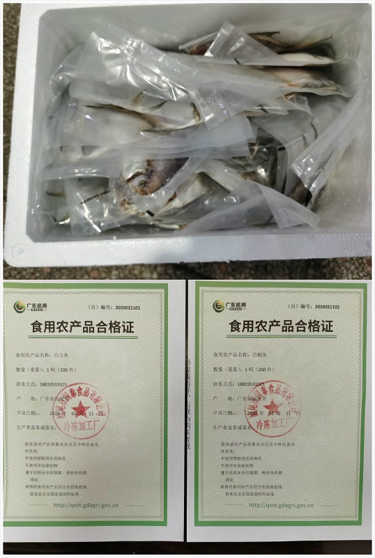 国泰科协捐赠的该批物资白立鱼、白鲳鱼均采用现代海洋食品精深加工技术,腌制工艺特殊,能造就比活鱼更“鲜”的美味,是按照广东省农业农村厅《关于试行食用农产品合格证制度的通知》要求,办理了食用农产品合格证。