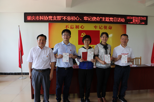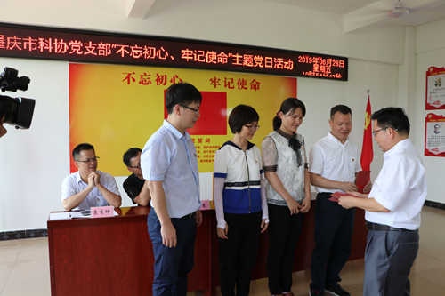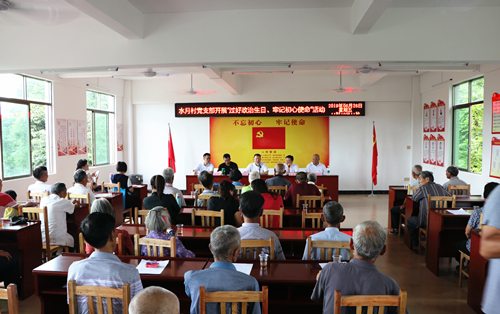 为庆祝中国共产党建党98周年,进一步增强党组织的凝聚力和战斗力,推动“不忘初心、牢记使命”主题教育和创建模范机关活动向纵深开展,6月28日,肇庆市科协联合广宁县科协在广宁县江屯镇水月村初心堂开展了“不忘初心、牢记使命”迎“七一”主题党日活动。市、县两级科协全体党员和水月村部分党员代表60多人参加了活动。活动由市科协党组成员、党支部书记吴洪主持,市科协党组书记余飞兴以普通党员身份参加活动并为全体党员上了一节党课。