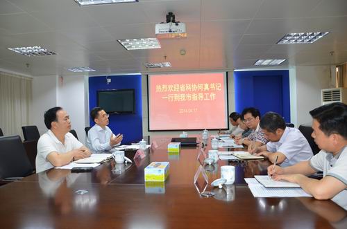 4月17-18日,省科协党组书记、副主席何真一行到肇庆市开展科协工作调研。肇庆市政协党组成员郑彬涛、市政协副主席陈玉斌会见了何真一行。肇庆市政府副秘书长周文浣,肇庆市科协党组书记、主席邓广全等参加了调研。在调研中,何真强调,科协必须把关注的目光更多地投向经济建设第一线、投向企业,科协组织只有真正与产业界、企业界实现了良性互动,用科协的办法解决科技与经济两张皮的问题,科协的地位和作用才能突显,党委、政府才能真正重视和支持科协。