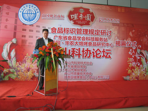 4月28日下午,在中山市科协、广东省食品学会联合举办的“中山科协论坛”上,由广东省食品学会设立的科技服务站隆重举行揭匾仪式。省科协党组成员、秘书长杨豪标出席中山科协论坛暨广东省食品学会科技服务站揭匾仪式并作讲话。