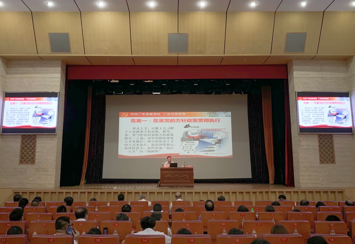 6月18日上午,省科协会同省科技厅在广东科学馆科学会堂举办“不忘初心、牢记使命”主题教育专题辅导第二场报告会。邀请了中共广东省委党校武晟教授作《加强和改进党的作风建设,整治和力戒形式主义、官僚主义》主题报告。省科协党组书记、专职副主席郑庆顺主持报告会,省科协和省科技厅领导班子成员、两个单位机关和直属单位全体党员(含离退休党员)400多人参加报告会。