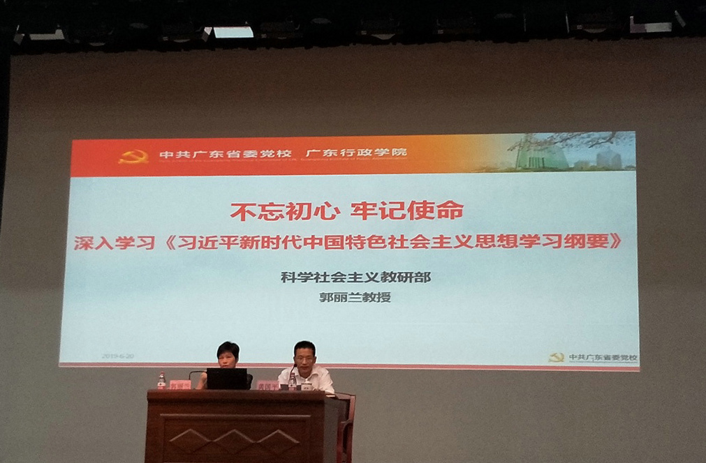 6月20日上午,省科协会同省科技厅在广东科学馆科学会堂举办“不忘初心、牢记使命”主题教育专题辅导第四场报告会。中共广东省委党校科学社会主义教研部郭丽兰教授作“不忘初心 牢记使命,深入学习《习近平新时代中国特色社会主义思想学习纲要》”主题报告。省科技厅党组副书记、副厅长龚国平主持报告会。省科协和省科技厅领导班子成员、两单位机关和直属单位全体党员(含离退休党员)400多人参加报告会。