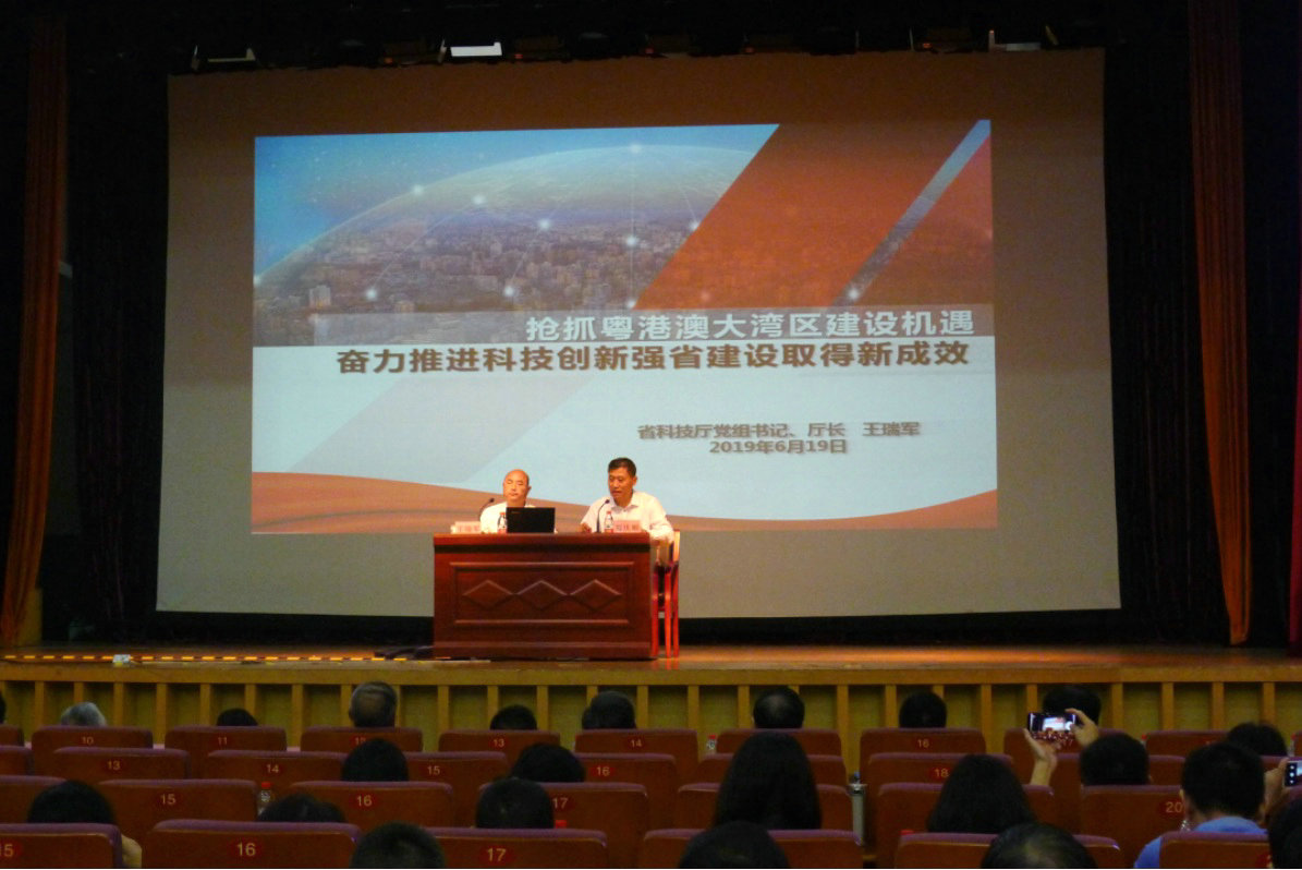 6月19日上午,省科协会同省科技厅在广东科学馆科学会堂举办“不忘初心、牢记使命”主题教育专题辅导第三场报告会。省科技厅党组书记、厅长王瑞军作《抢抓粤港澳大湾区建设机遇 奋力推进科技创新强省建设取得新成效》主题报告。省科协党组书记、专职副主席郑庆顺主持报告会。省科协和省科技厅领导班子成员、两个单位机关和直属单位全体党员(含离退休党员)500多人参加会议。