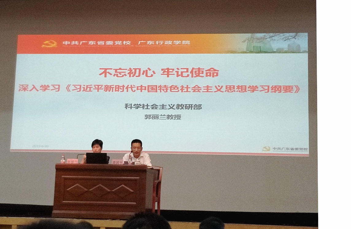 6月20日上午,省科协会同省科技厅在广东科学馆科学会堂举办“不忘初心、牢记使命”主题教育专题辅导第四场报告会。中共广东省委党校科学社会主义教研部郭丽兰教授作“不忘初心 牢记使命,深入学习《习近平新时代中国特色社会主义思想学习纲要》”主题报告。省科技厅党组副书记、副厅长龚国平主持报告会。省科协和省科技厅领导班子成员、两单位机关和直属单位全体党员(含离退休党员)400多人参加报告会。