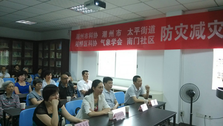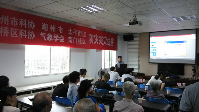 “减少灾害风险、建设安全城市”是今年5·12“防灾减灾日”的主题,为切实做好“防灾减灾”宣传活动,潮州市科协、湘桥区科协联合组织开展社区气象科普宣传活动。此次气象科普宣传活动邀请了市气象专家谢松元高级工程师作气象科普知识讲座,针对近年的极端天气,讲授潮州市的气候特点、汛期天气趋势、气象预警、防灾避险等方面的知识,现场发放气象科普宣传材料300余份,并播放了《厄尔尼诺现象》、《台风来了怎么办》2部科普影片,图文并茂的展示和气象专家生动的讲解受到南门社区干部群众的热烈欢迎。在气象讲座结束后,市气象专家还实地对社区气象设备进行了检测及演示,对社区干群提出来的气象方面的问题进行了详细解答,作出具体的技术指导。