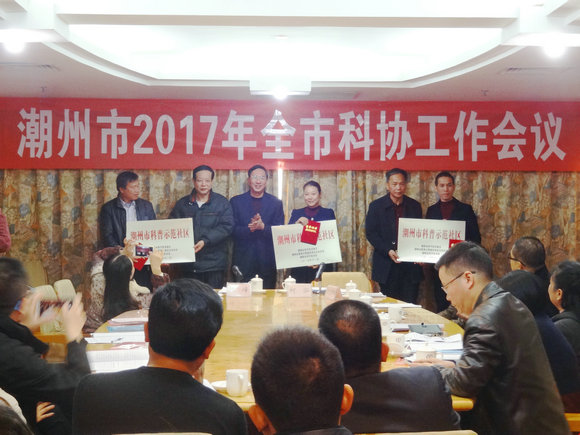 1月10日上午,潮州市科协在市迎宾馆五楼会议厅召开2017年全市科协工作会议。会议学习贯彻党的十九大精神,回顾总结2017年全市科协工作,研究提出2018年全市科协工作计划,表彰一批科普工作先进单位和个人,并为一批科普惠农兴村先进单位、科普教育基地、科普示范社区授牌。各县区科协主席,市级学(协)会、科普教育基地、科普示范社区的负责人,科普工作先进单位、先进个人,共50多人参加了会议。会议由市科协主席柯泓主持。