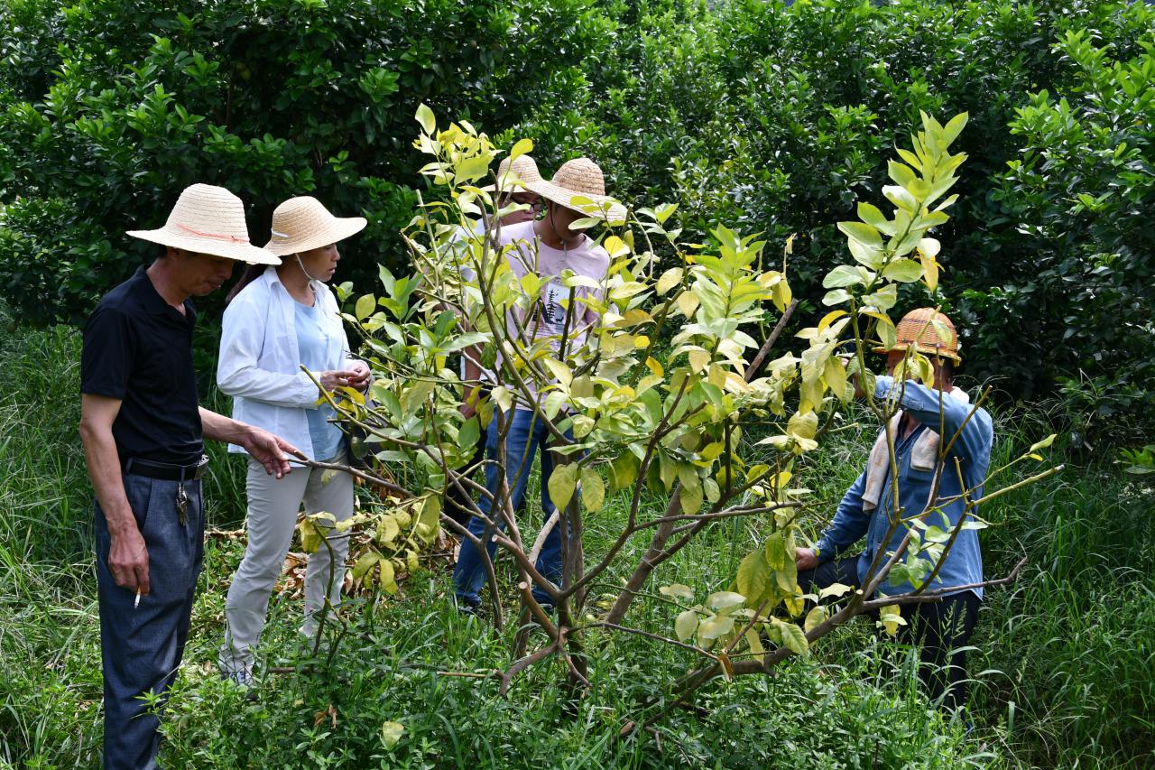 9月17日,潮州市果树研究所柑橘团队谢素金、许鹏彬、杨少辉、徐淡云、陈佳明等5名技术人员前往饶平县浮滨镇欧阳山村、三饶镇柠檬种植基地、新丰镇吉利来柑橘种植基地等地,为果农提供沃柑、蕉柑、柠檬等栽培技术服务。
