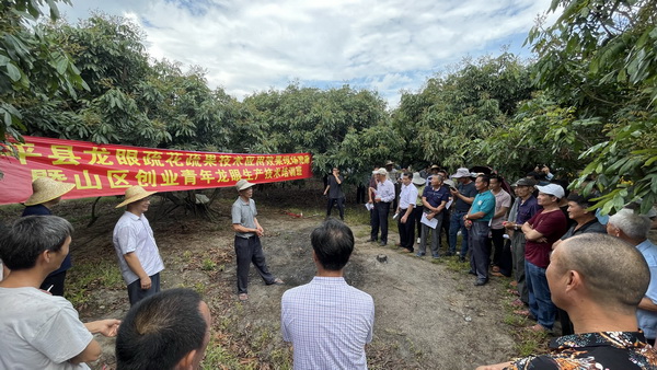 近日,潮州市饶平县科协针对龙眼果树正值开花、结果和夏季干旱保果提质的关键时刻,联合市果树研究所、县关工委、联饶镇农业农村服务中心在黄冈镇环城北路张应发农户龙眼果园举办“饶平县龙眼疏花疏果技术应用效果现场观摩暨山区创业青年龙眼生产技术培训班”。来自黄冈镇、联饶镇、新圩镇、浮滨镇龙眼种植大户、山区创业青年等约65人参加。