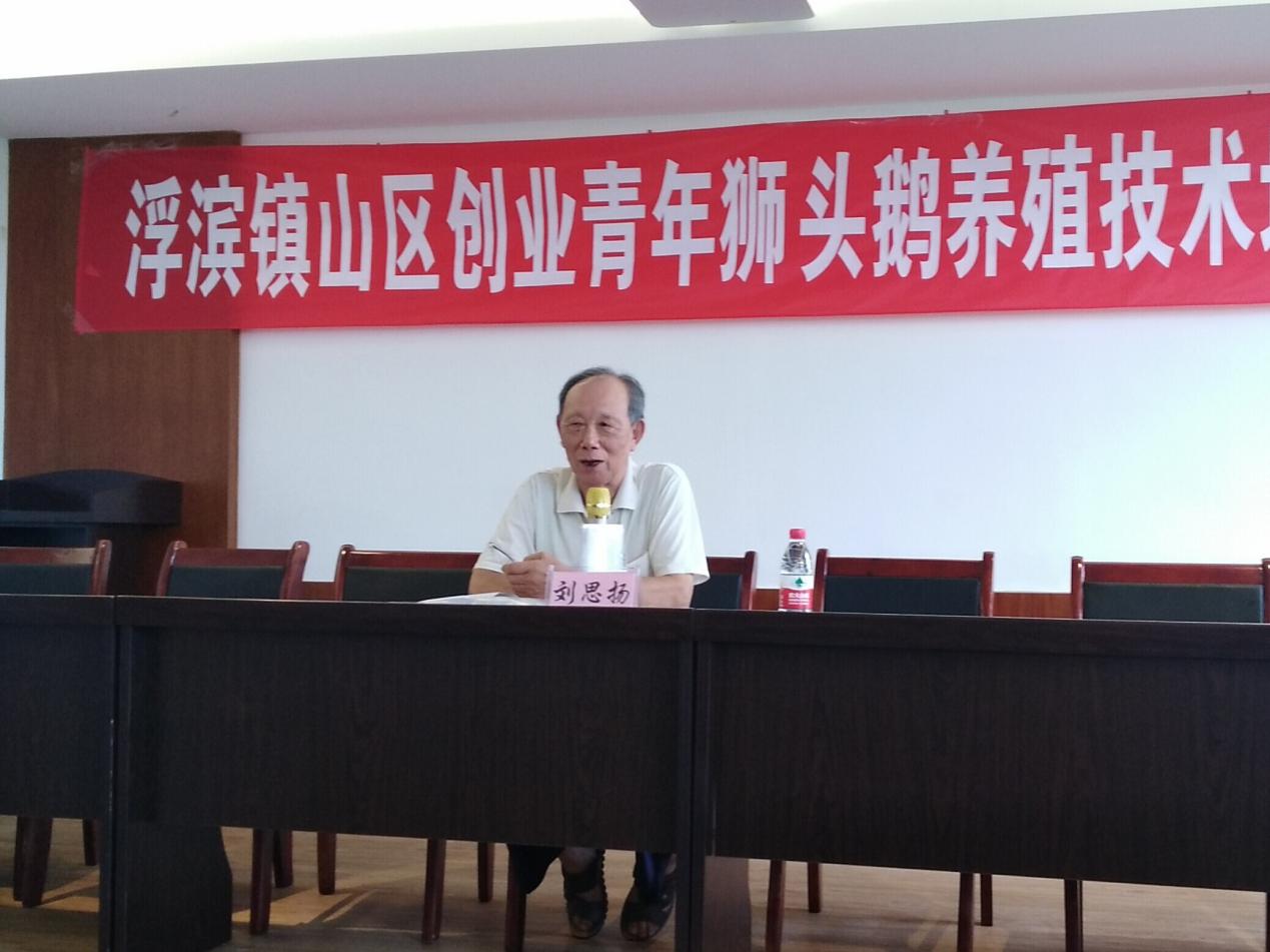 刘思扬同志是一名共产党员,县农业局退休干部、高级畜牧师,曾荣获“广东省先进工作者”、“省科普惠农兴村带头人”、“潮州市劳动模范”、“潮汕星河国瑞科技奖”等称号。他自2002年退休以来,作为研究饶平狮头鹅的老专家,十分重视原产于浮滨镇溪楼村的饶平狮头鹅品种资源调查、保护、推广和优化。他积极建言献策,通过他的组织策划,正式成立了饶平县浮滨狮头鹅协会,为狮头鹅的科学普及、技术转化创建了一个良好的平台,同时相继在种鹅、饲料、饲养、防疫、生物安全等方面举办了多场次科普讲座,为养殖户提供技术支撑,培养了一批批新型职业农民。