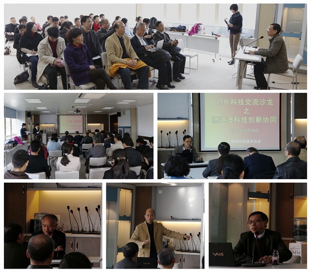 此次沙龙特邀广州市科协海外顾问、港澳委员--粤港科技产业发展促进会会长唐伟国博士、香港京港学术交流中心项目主管邹重华博士和澳门科技发展基金会高级科技顾问刘良钢教授分别作了题为“促进粤港科技创新协同发展”、“香港发展高科技产业的可能性及穗港合作”和“澳门科技发展基金相关情况”的报告。唐伟国博士重点介绍了粤港科技产业发展促进会在推动粤港两地科技合作方面所作的努力。邹重华博士与大家分享了香港、深圳、广州三地在发展高科技产业方面的背景并重点分析了香港发展高科技产业的优势。他建议广州在发展高科技产业方面可以借鉴香港一些先进的作法并可与香港协同发展。刘良钢教授则向参会人员介绍了澳门科技发展基金会的运作模式及基金会在高科技产业和科普项目方面的资助情况,并鼓励参会高校可申请基金会的一些资助项目并可联合培训葡语科技人才,得到了参会人员的积极响应。