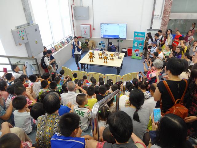 6月1日上午,广州市青少年科技中心的“千师万苗工程”走进广州少儿图书馆与青少年联欢,庆祝该馆建馆二十周年。新颖的智能机器人展示和互动游戏吸引现场很多儿童参与,陪他们度过了一个快乐而有意义的儿童节。