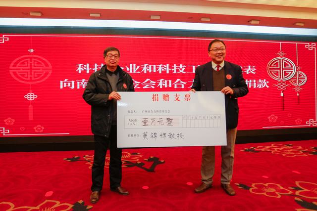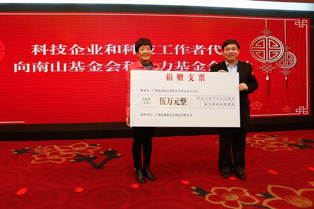 广州市科协在2005年和2007年分别倡导成立了南山自然科学学术交流基金会和合力科普基金会,一直以来,这两个基金会都在默默地支持资助广州地区科技工作者开展学术交流活动、举办科普活动,出版科普和学术书籍,表彰和奖励优秀科技工作者代表。在年会上,广州医和你信息科技有限公司向南山南山自然科学学术交流基金会捐赠5万元,公司CEO彭林教授代表公司上台进行捐赠;全国政协港澳委员、香港中文大学黄锦辉教授向合力科普基金会捐赠1万元,用于资助贫困山区学生参加科普活动。