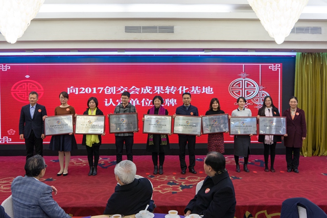 会上,广东省科协党组副书记、副主席唐毅和广州市科协党组书记、副主席陈爽为服务中国创新创业成果交易会项目对接成果转化而成立的首批8家成果转化基地授牌。