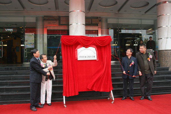 3月9日上午,“广州市青少年科技创新人才培养――千师万苗工程”办公室举行揭牌仪式,中国科学院院士张景中、广州市科协党组书记冯元、广州大学王正询教授和广州市第六中学校长刘建祥共同为工程办公室揭牌。来自广州市科协、千师万苗工程学术委员会的专家代表和各中小学校的校长代表共同见证了千师万苗工程办公室的正式启用,此举也标志着经过精心筹备的千师万苗工程正式启动,进入具体实施运营阶段。