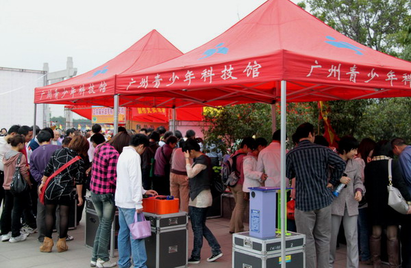 3月15日,广州市科学技术中心、广州青少年科技馆派出科普大篷车,为当天于黄埔南海神庙举行的第七届广州民俗文化节暨黄埔“波罗诞”千年庙会助兴。