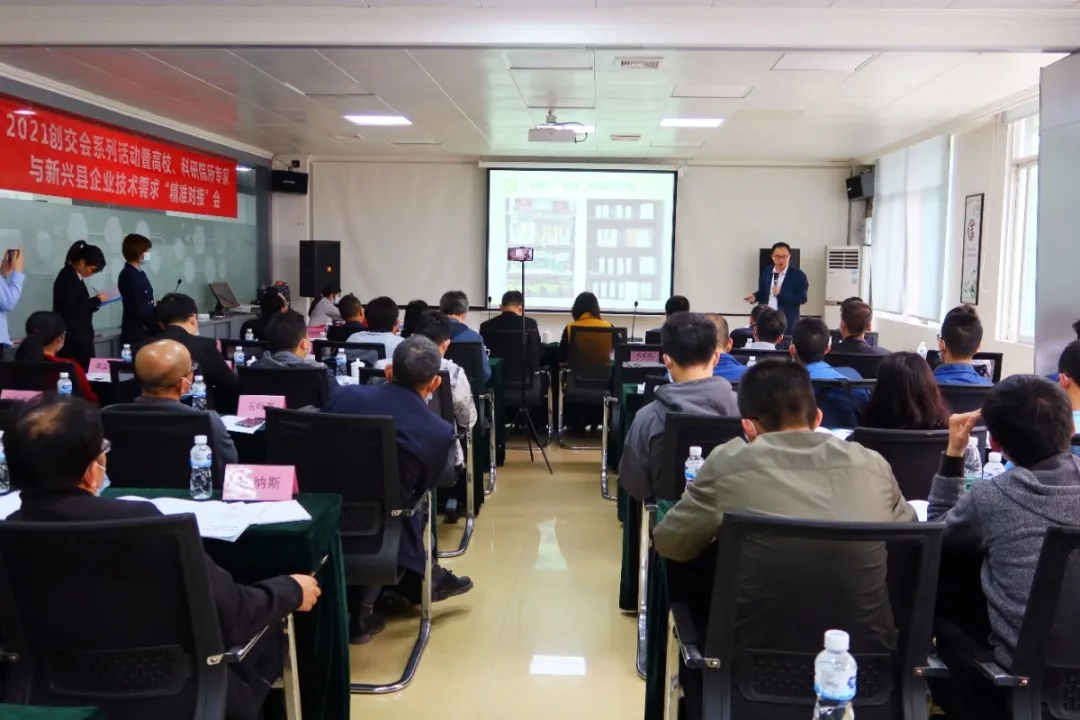 为充分发挥作为中国创新创业成果交易会成果转化基地作用,推动粤港澳大湾区创新资源和高校和科研院所科技成果在云浮市新兴县转化落地,助力该县科技和产业的高质量发展,3月25日,由中国科协企业创新服务中心,中国创新创业成果交易会办公室支持的“2021创交会系列活动”暨高校、科研院所专家与新兴县企业技术需求“精准对接”活动在新兴县创新中心举行。广州市科协,新兴县工业和信息化局、科学技术局、创新中心有关领导,广州市科技成果转化促进会,以及来自高校、科研院校的专家和企业代表等60余人参加了会议。