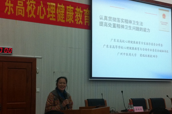 会后,广东省高校心理健康专家指导委员会常委、广东中医药大学梁瑞琼教授作“认真贯彻落实精神卫生法,提高处置精神卫生问题的能力”讲座。河源心理学会会员、河源职业技术学院老师、河源监狱干警,以及心理学爱好者听取讲座。东莞理工学院涂月老师为大家做催眠心理咨询方法演示。