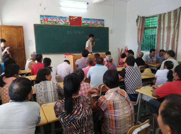 8月25日上午,河源市科协、市科技咨询服务中心到紫金县南山村举办水稻、花生种植技术扶贫培训班。