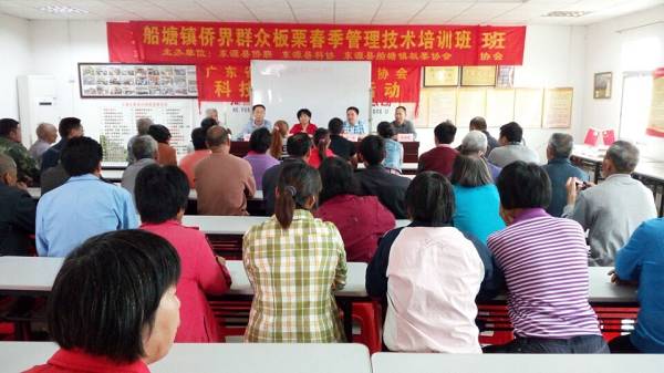 为加强东源县侨界群众板栗生产管理技术水平,4月19日,东源县科协、县侨联与船塘镇板栗协会共同举办一期侨界群众板栗技术培训班。培训班共有50多名侨界群众参加,邀请东源县农业技术专家欧林漳为大家授课,县侨联主席李期霞、县科协副主席杨舒出席了培训班。