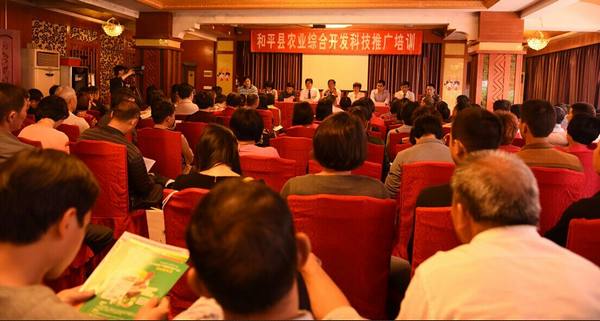 4月12日,河源市和平县科协联合县农村创业青年协会在幸福大酒楼举办农业综合开发科技推广培训班,各镇分管农口工作领导、种养大户、农产品销售人员、农村创业青年协会会员等263人参加培训。