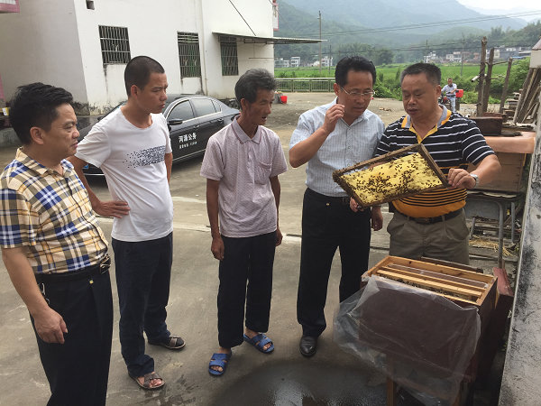 9月9日,河源市科协党组书记、副主席陈春林邀请了广东省养蜂学会会长罗岳雄一同来到曾田镇梅花村的贫困户郭越飞家中指导解决养蜂过程中遇到的技术难题。