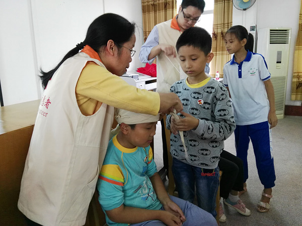 讲师们或是借助医护道具,或是图文并茂结合真人实操,生动形象地给学生进行演示讲解。假如食物卡喉了怎么办?不慌,海姆立克急救法可以帮人也可以自救;心肺复苏是不是谁都可以做?该怎么做?刘经宝医师一一为学生们解答并操作演示;如果头部或是手脚受伤了,怎样包扎才不至于造成第二次创作呢?肖燕骊医师手把手教学生们正确的包扎方法。