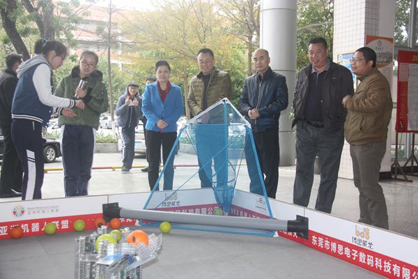 开幕式结束后,吴素香在河源中学吴佑宽校长的陪同下,参观了机器人互动、VR虚拟现实、3D打印等体验活动。