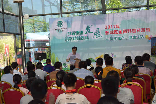9月27日,以“创新驱动发展,科学破除愚昧”为主题的2017年源城区全国科普日活动在埔前镇陂角村春沐源智慧果梦工厂举行。此次活动由区科协主办,埔前镇人民政府协办,春沐源智慧蔬果梦工厂承办。副区长范志君、区科协全体工作人员、各镇、街分管科协领导和科普协会秘书长、以及学生代表200多人参加了此次活动。