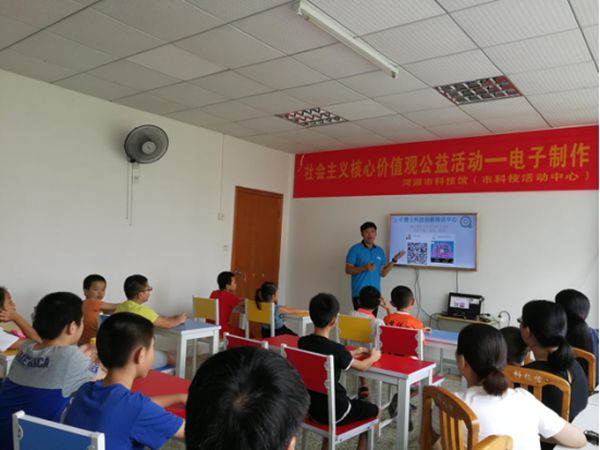 8月18日,河源市科技馆第六期电子制作亲子活动之“神奇音符弹奏夹”开课。活动吸引了13组家庭,共27人参加。