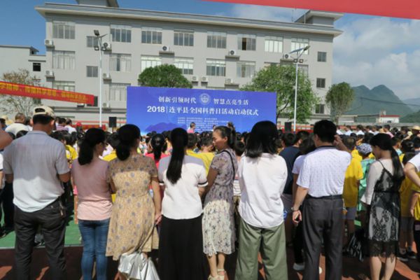 9月19日,在连平县陂头镇文化广场举行了以“创新引领时代,智慧点亮生活”为主题的2018年连平县全国科普日活动启动仪式。此次活动由连平县科学技术协会、陂头镇人民政府联合主办,中共连平县委常委、县委办主任谢国定出席活动并作讲话及宣布2018年连平县全国科普日活动正式启动,连平县陂头镇委书记李杰致辞,活动仪式由连平县科协党支部书记、主席何丽琴主持。县直12个相关单位和陂头镇中心小学师生及周边群众共600多人参加了启动仪式。