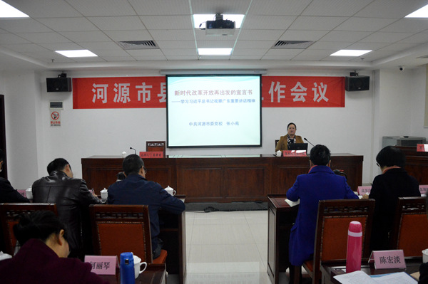 会议开始前,市委党校副校长、市委宣讲团成员张小苑为全体与会人员作了“新时代改革开放再出发的宣言书”——学习习近平总书记视察广东重要讲话精神辅导报告。吴素香要求各县区科协、机关及下属单位认真学习贯彻党的十九大精神和习近平新时代中国特色社会主义思想,按照省科协的要求,围绕党委、政府的工作大局认真履行职责,创造性、主动性地开展各项工作,努力推进科协工作上新台阶。