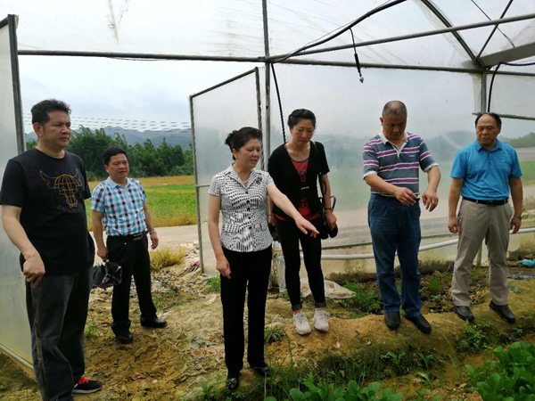 5月17日上午, 河源市人大常委会副主任、科协主席吴素香率队到东源县阳光绿源生态农场科普示范基地调研。