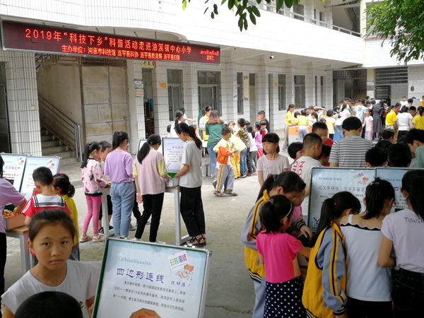 5月15日,河源市科技馆工作人员携科普展品走进连平县油溪镇中心小学,开展“科技下乡”活动。
