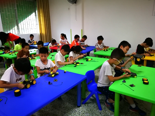 7月22日,河源市科技馆2019年暑假“擂台机器人”公益课堂第二期如期开课,课程分上午堂和下午堂两场,共吸引了50多位学生前来参加。