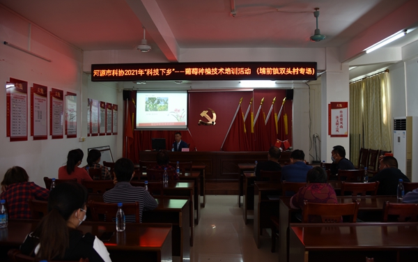 10月19日,河源市科协在埔前镇双头村开展2021年“科技下乡”——葡萄种植技术培训活动,邀请东源县万绿松种养专业合作社技术员彭根生为30余葡萄种植户讲解南方葡萄种植栽培技术。