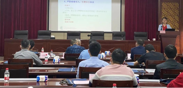 第二部分是举办“非洲猪瘟常态下规模养殖场降本增效措施”研讨会。