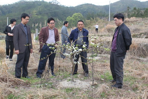 2月28日,河源市科协党组成员、副主席钟道良带领有关部门负责人和专家到龙川县回龙镇调研水晶梨种植推广工作,县科协主席杨优生,副主席曾国钊等同志陪同调研。