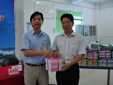 惠州市惠城区科协主席李金治向企业“职工书屋”赠送科普书籍