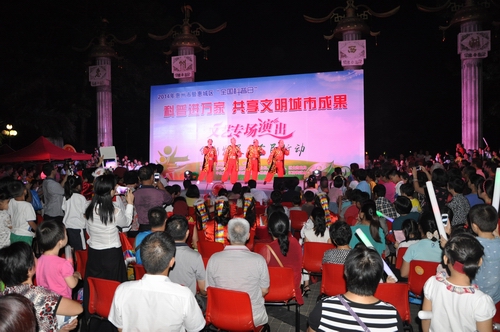 此次活动从下午延续到晚上。晚上的内容有科普知识有奖问答、科普进万家共享文明城市成果文艺专场演出。晚会还对惠城区获评全国科普示范社区的金湖社区及惠阳、惠东两个科普示范单位进行了授牌。活动吸引了周边居民和路过市民2000多人前来咨询、义诊、互动和索要各种科普资料、观看演出等,此次派发各类科普资料2万多册,现场气氛非常热闹。