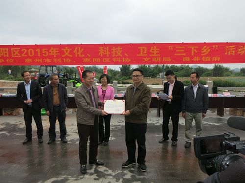 4月9日上午,由惠州市科协和惠阳区科协、文明局、良井镇府共同主办的惠州市惠阳区2015年文化、科技、卫生“三下乡”活动在良井镇矮光村隆重举行。惠州市科协副主席黄宗太、惠阳区副区长朱文转等出席活动。参加此次活动的人员还有市科协相关部室的领导,惠阳区25个相关单位的80多名业务骨干和科普志愿者,以及良井镇干部群众和学生代表等600多人。