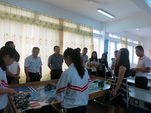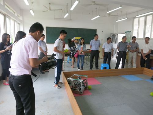 5月17日上午,惠州市惠阳区科协主席林庆财带领有关人员到惠阳实验学校看望慰问刚刚参加完第16届广东省青少年机器人竞赛的参赛选手和指导老师,向他们道贺的同时,对该校锐智队备战全国竞赛的情况进行了指导。