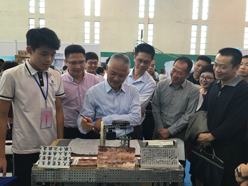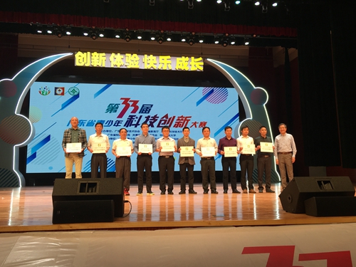 大赛中,选手们在科技创新成果竞赛项目中展现出超强实力和巨大优势,5个学生项目中获得了一等奖2个、二等奖3个和专项奖7个。其中,惠阳高级中学初中部熊明锐同学的《甘蔗高效施肥器》、惠阳区实验小学祁梓茵同学的《井盖丢失安全即时警示器》荣获一等奖,惠阳实验学校张宗扬同学的《智能书画桌》、华南师范大学附属惠阳学校王文豪、钟晨晖、汪楚杰同学的《一体化智能购物车》和华南师范大学附属惠阳学校张秩翔同学的《防溺水安全书包》荣获二等奖。同时,《甘蔗高效施肥器》获“广东省科协主席奖”和“逸仙英才奖”,《 井盖丢失安全即时警示器》和《 防溺水安全书包》获“华南师范大学附属中学科技创新奖”,《 智能书画桌》获“广东振兴基金会.王老吉创新英才奖”和“十佳DIY展板设计奖”,《 一体化智能购物车》获“智王星科创精英奖”。科技辅导员5个参赛项目也获得了1个一等奖、1个二等奖和3个三等奖的突出成绩。其中,华南师范大学附属惠阳学校江娜老师的《滚速力学演示棒》荣获一等奖,华南师范大学附属惠阳学校李俊华老师的《电控调色教学用具》荣获二等奖,华南师范大学附属惠阳学校陈燕老师的《行走的“地理”》、惠阳实验学校罗青林老师的《可调式眼睛成像仪》和惠阳实验学校叶根茂老师的《奏响电磁感应》荣获三等奖。惠阳高级中学熊明锐同学的《甘蔗高效施肥器》和华南师范大学附属惠阳学校江娜老师的《滚速力学演示棒》更是将代表广东省参加今年8月在重庆市举行的第33届全国青少年科技创新大赛。